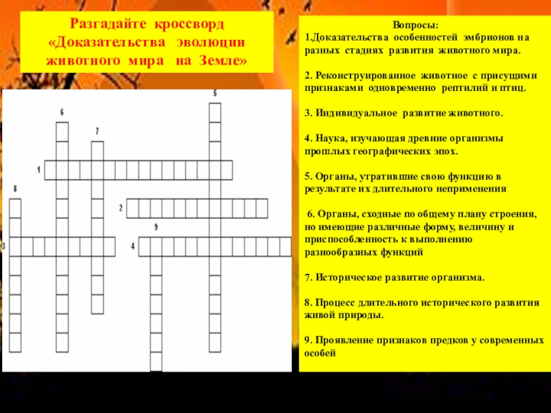 Слайд 47Разгадайте кроссворд «Доказательства эволюции животного мира на Земле»