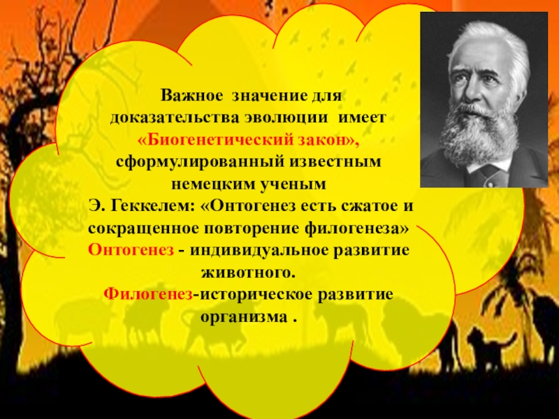 Важное значение для доказательства эволюции имеет «Биогенетический закон», сформулированный известным