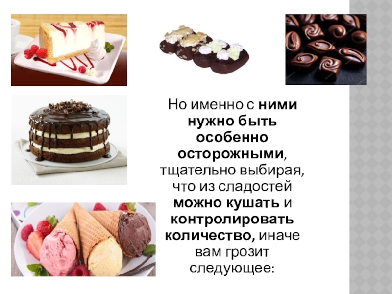 из сладостей можно кушать и контролировать количество, иначе вам грозит следующее: