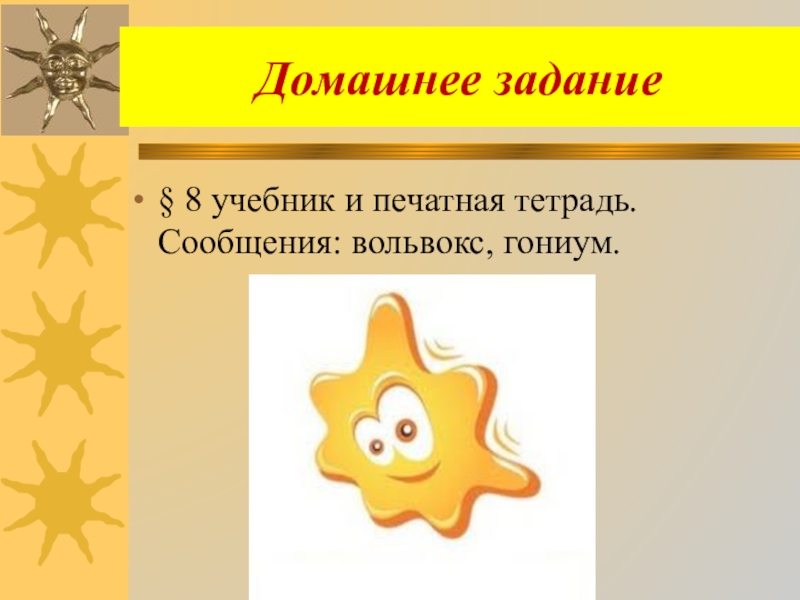 § 8 учебник и печатная тетрадь. Сообщения: вольвокс, гониум.