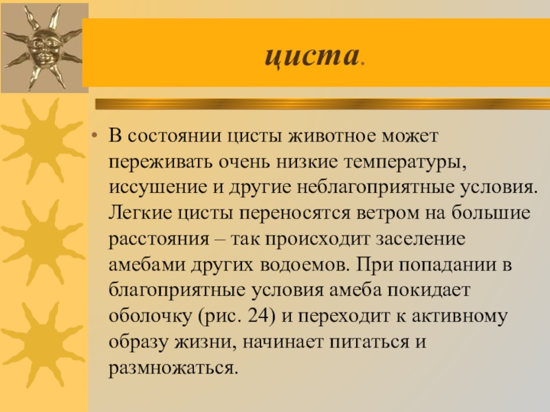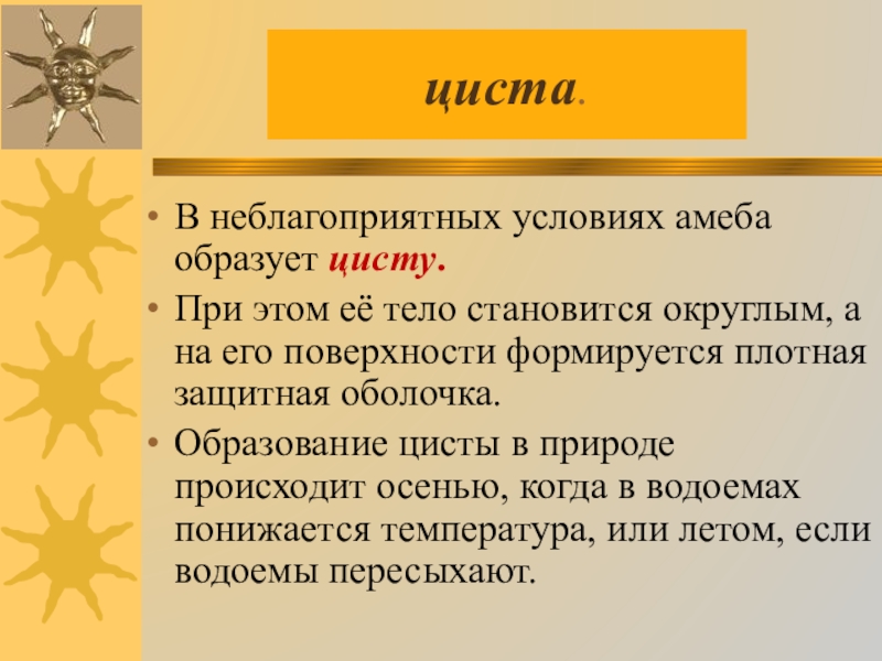 живого организма. При неблагоприятных условиях амеба образует цисту.