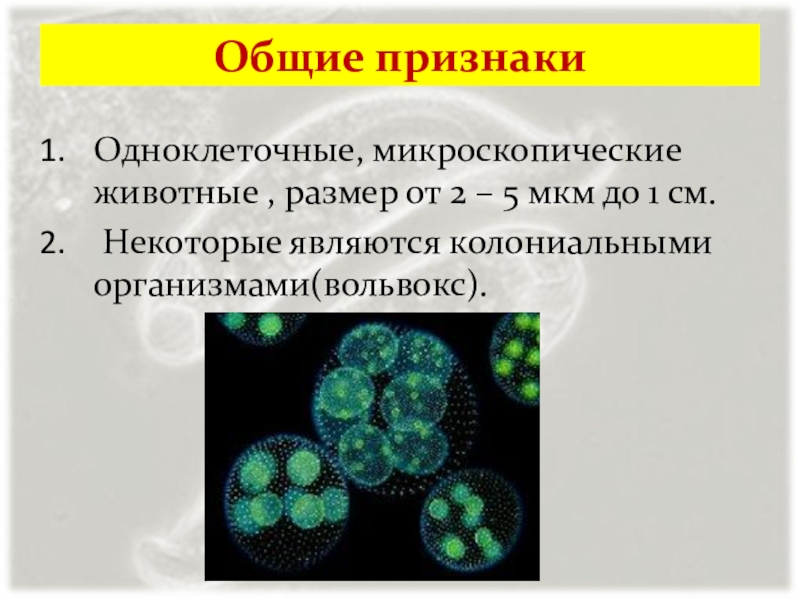 Одноклеточные, микроскопические животные , размер от 2 – 5 мкм