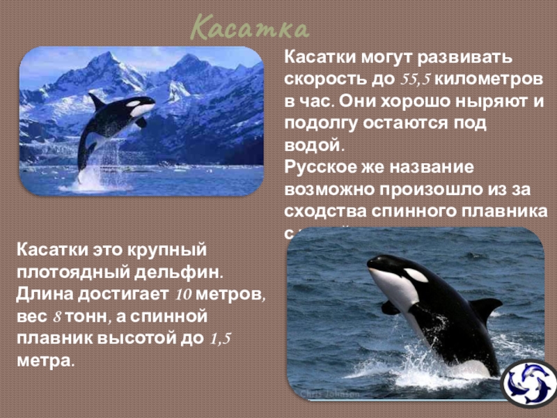 Касатки могут развивать скорость до 55,5 километров в час. Они хорошо ныряют и подолгу остаются под водой.