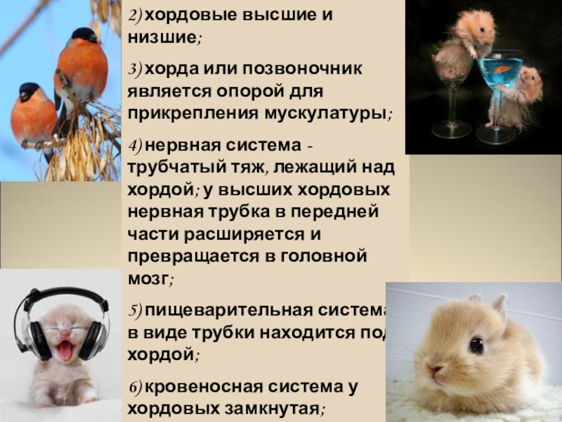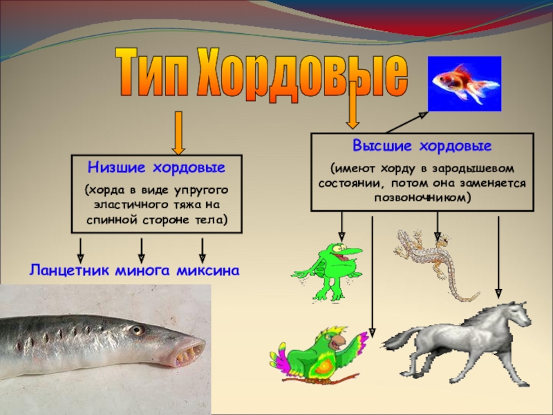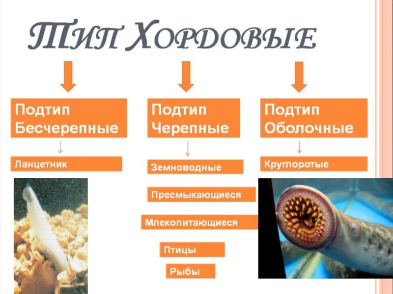 (имеют хорду в зародышевом состоянии, потом она заменяется позвоночником)