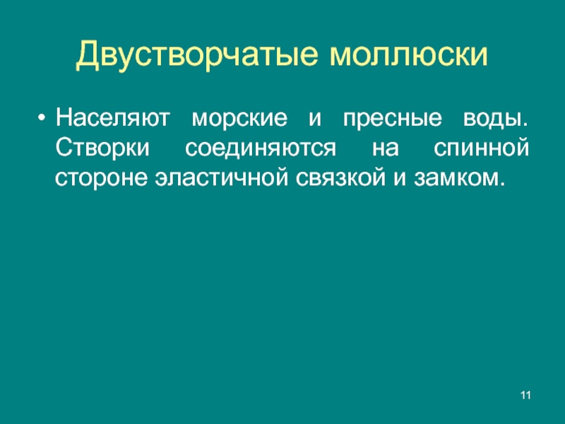 Двустворчатые моллюскиНаселяют морские и пресные воды. Створки соединяются на спинной стороне эластичной связкой и замком.