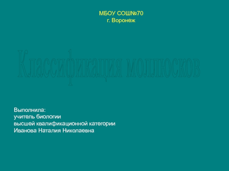 МБОУ СОШ№70 г. ВоронежКлассификация моллюсковВыполнила:учитель биологии высшей квалификационной категорииИванова Наталия Николаевна