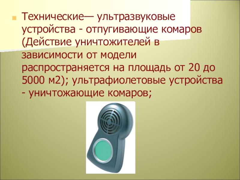 Технические— ультразвуковые устройства - отпугивающие комаров (Действие уничтожителей в зависимости от