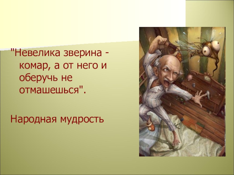 "Невелика зверина - комар, а от него и оберучь не отмашешься".