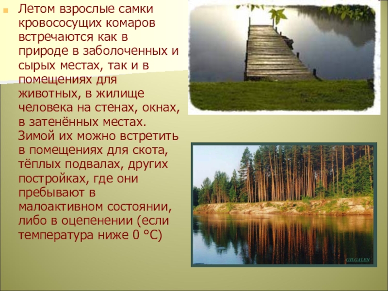 Слайд 9Летом взрослые самки кровососущих комаров встречаются как в природе в заболоченных