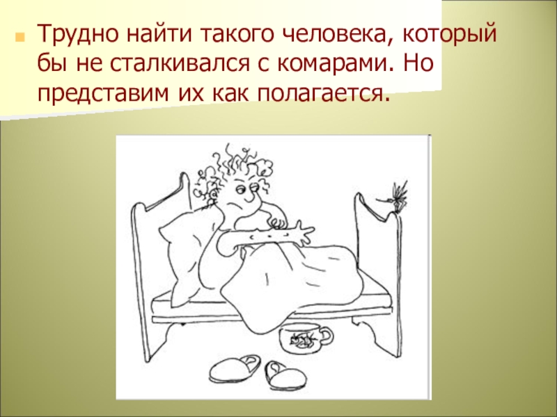 Слайд 2Трудно найти такого человека, который бы не сталкивался с комарами. Но