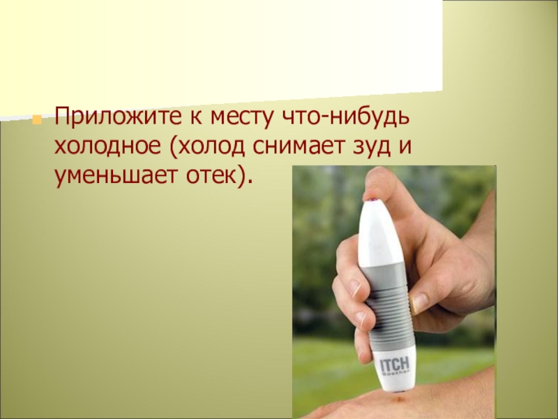 Приложите к месту что-нибудь холодное (холод снимает зуд и уменьшает отек).