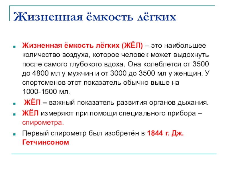 что такое жизненная ёмкость лёгких и что определяет этот показатель