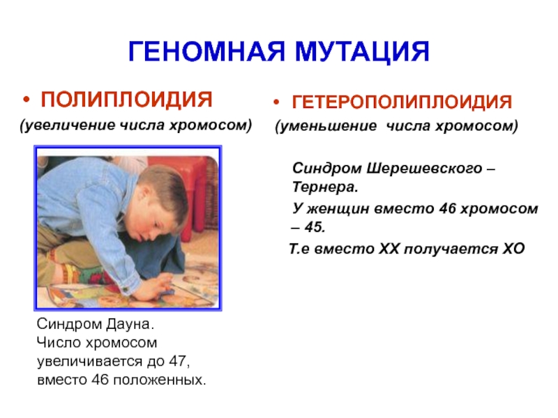 Число хромосом увеличивается до 47, вместо 46 положенных.