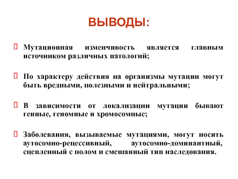 Мутации могут быть вредными, нейтральными и полезными для организма;