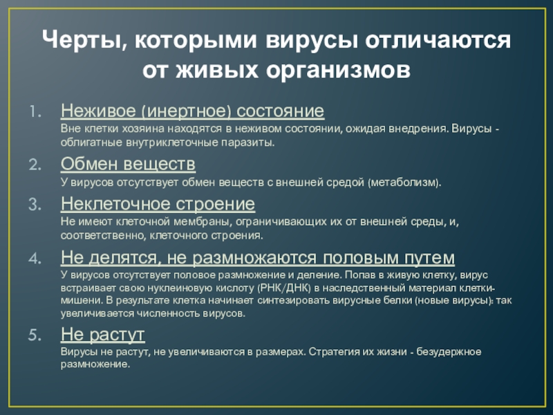 Слайд 5Черты, которыми вирусы отличаются от живых организмов