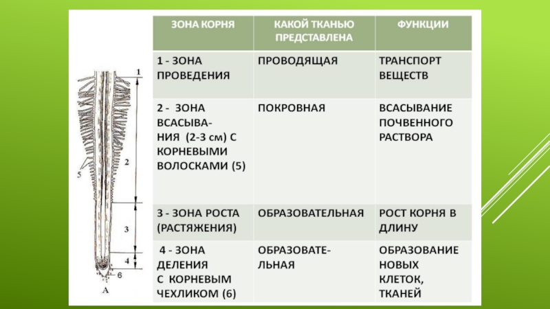 Презентация, доклад по биологии для уч-ся 6 класса на тему: Строение корня