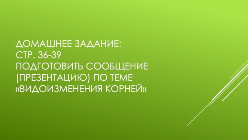 Слайд 12Домашнее задание: стр. 36-39 подготовить сообщение (презентацию) по теме «Видоизменения корней»