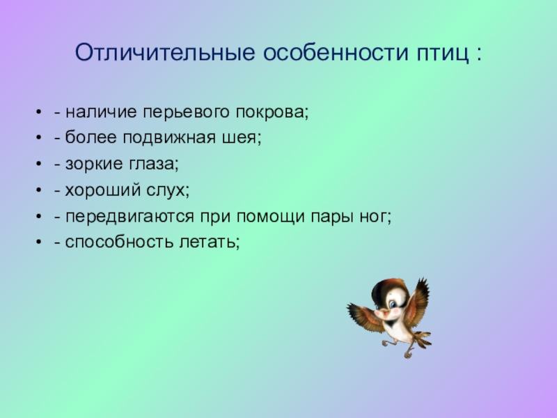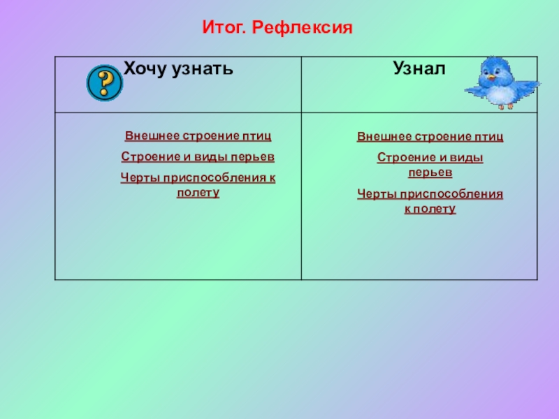 «Птицы: общие признаки, особенности внешнего строения» ( 8 класс VIII вида)