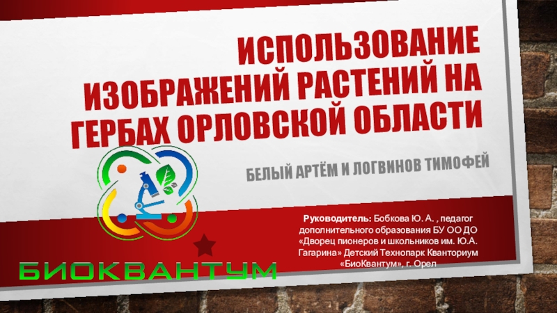 Руководитель: Бобкова Ю. А. , педагог дополнительного образования БУ ОО ДО «Дворец пионеров и школьников им. Ю.А. Гагарина» Детский Технопарк Кванториум «БиоКвантум», г. Орел