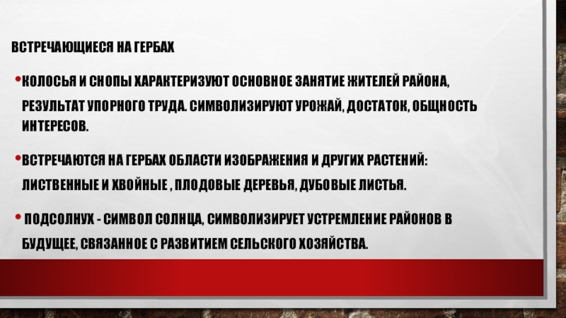 Отдельные растения на гербах районов говорят о традиционно выращиваемых культурах
