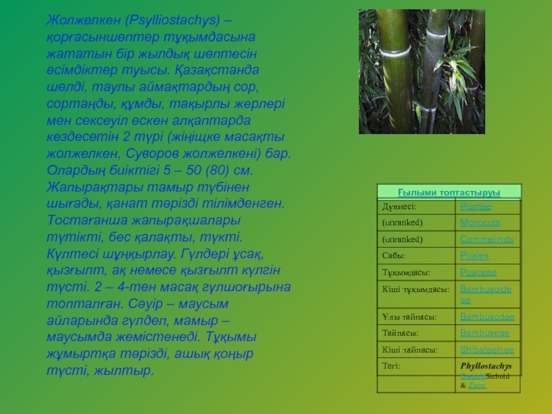 Слайд 9Жолжелкен (Psyllіostachys) – қорғасыншөптер тұқымдасына жататын бір жылдық шөптесін өсімдіктер туысы.