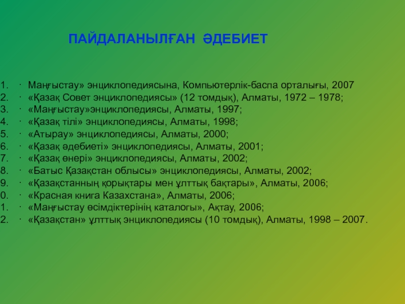 ПАЙДАЛАНЫЛҒАН ӘДЕБИЕТ