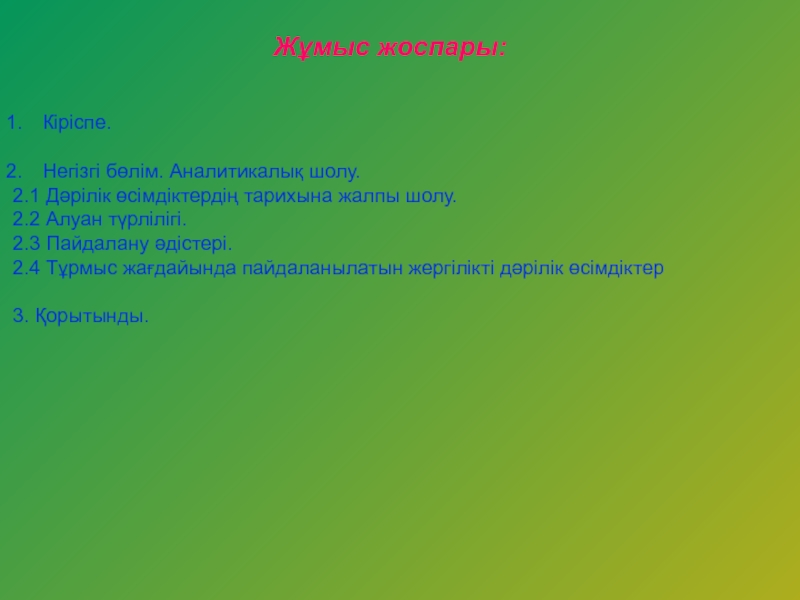 Слайд 2Жұмыс жоспары: