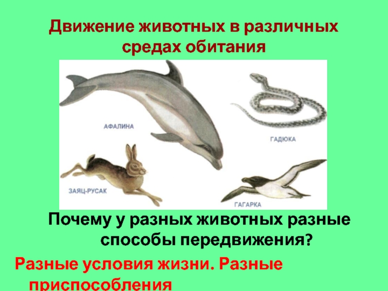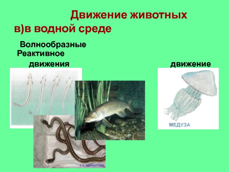 -специальные органы движения (плавники, полость тела, плавательные перепонки)