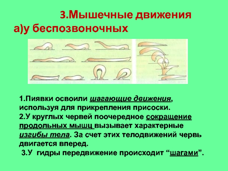 1.Пиявки освоили шагающие движения, используя для прикрепления присоски.