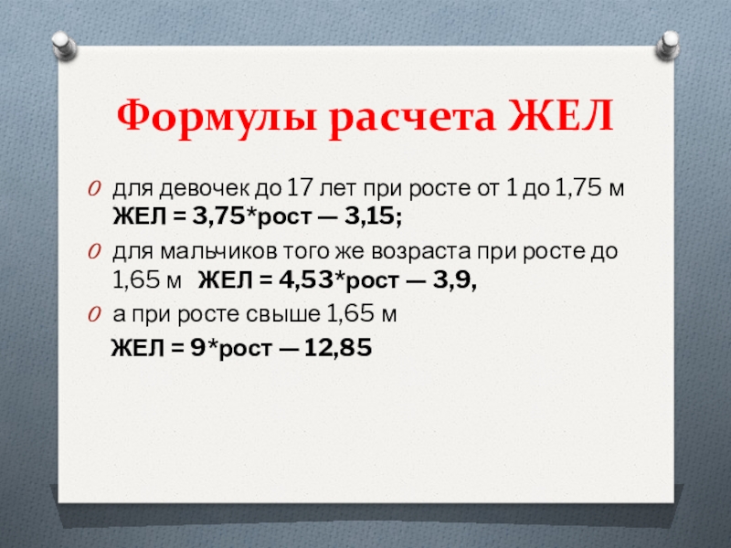 до 1,75 м ЖЕЛ = 3,75*рост — 3,15;