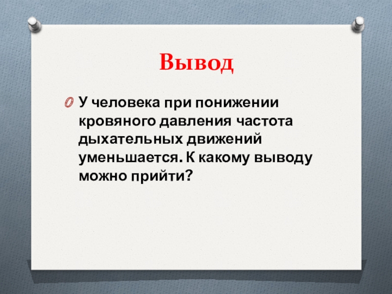 У человека при понижении кровяного давления частота дыхательных движений уменьшается. К