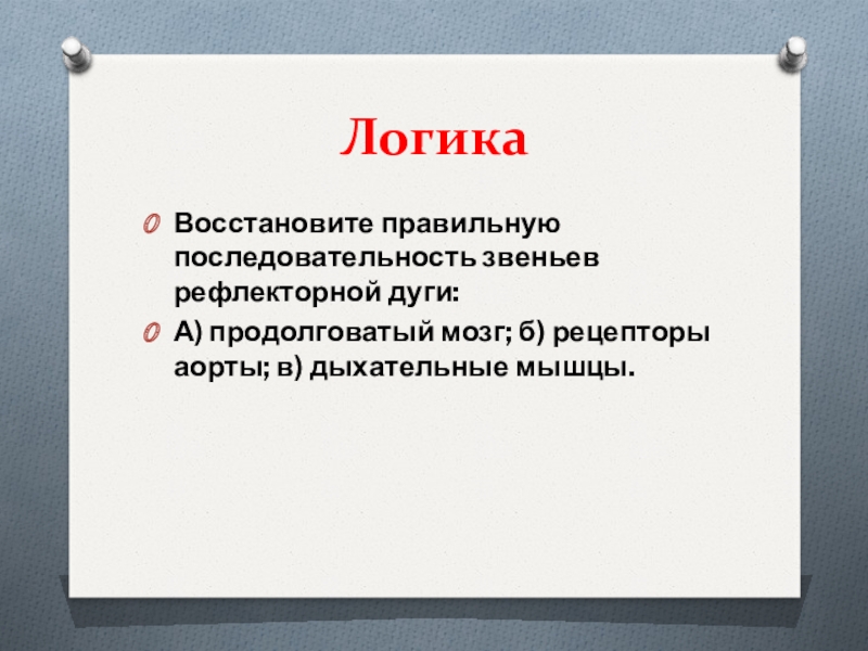 Восстановите правильную последовательность звеньев рефлекторной дуги: