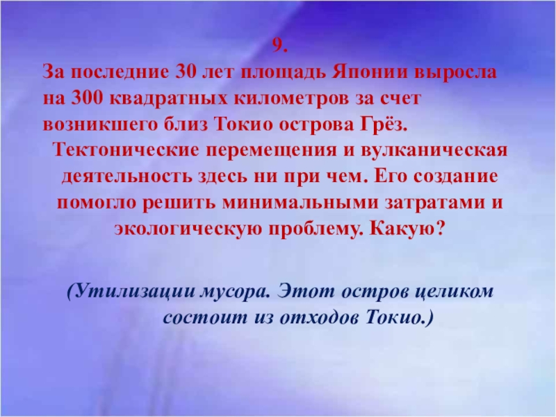(Утилизации мусора. Этот остров целиком состоит из отходов Токио.)