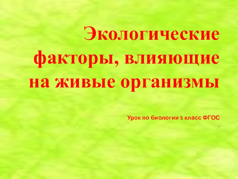 Слайд 1Экологические факторы, влияющие на живые организмы Урок по биологии 5 класс ФГОС .