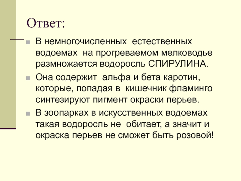Ученые долго не могли разгадать загадку фламинго, но все разъяснилось очень просто: причина была в особой водоросли СПИРУЛИНЕ.