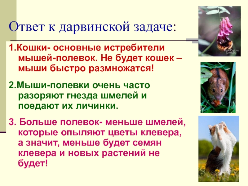 1.Кошки- основные истребители мышей-полевок. Не будет кошек –