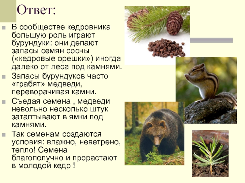 В сообществе кедровника большую роль играют бурундуки: они делают запасы семян