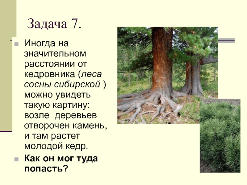 можно увидеть такую картину: возле деревьев отворочен камень, и там растет молодой кедр.