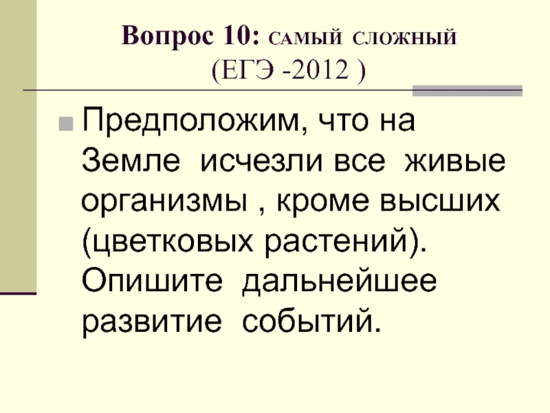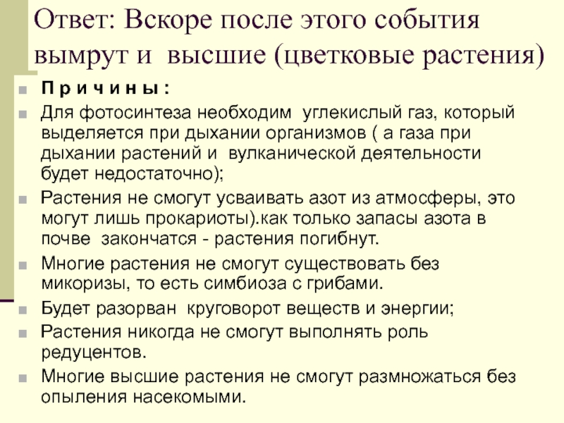 Слайд 26Ответ: Вскоре после этого события вымрут и высшие (цветковые растения)