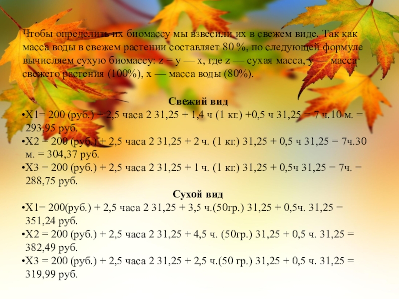 1) Вычислить биомассу некоторых растений, произрастающих на территории пришкольного участка и села.