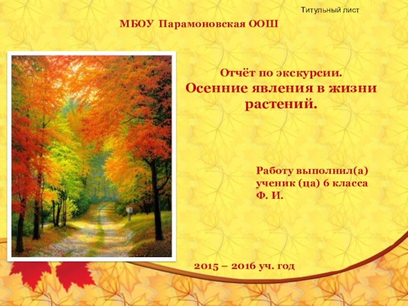 Слайд 2Цель : познакомить учащихся с осенними явлениями в жизни растений.