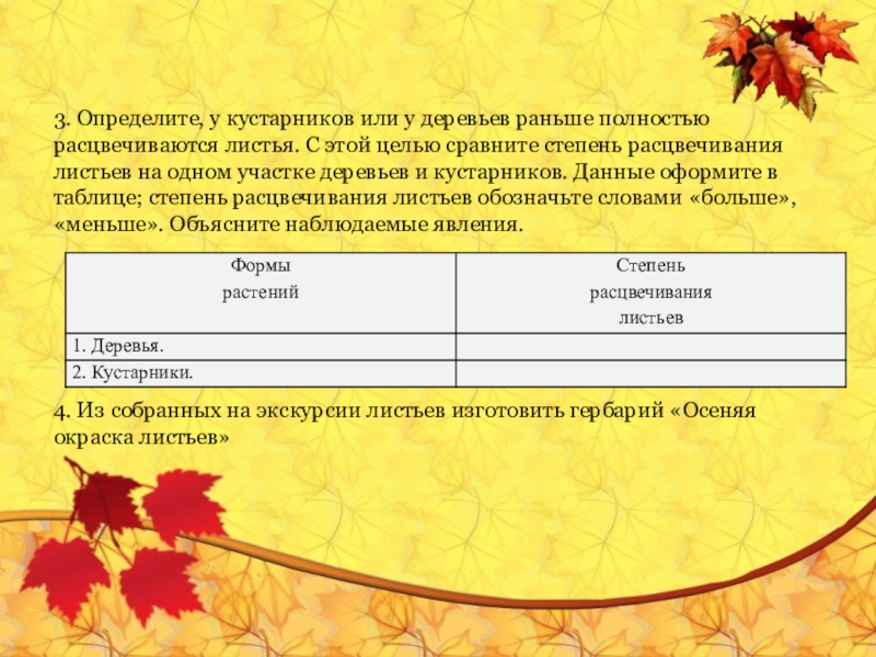 5. Выясните, у каких растений осенью листья опадают раньше, а у каких – позже.