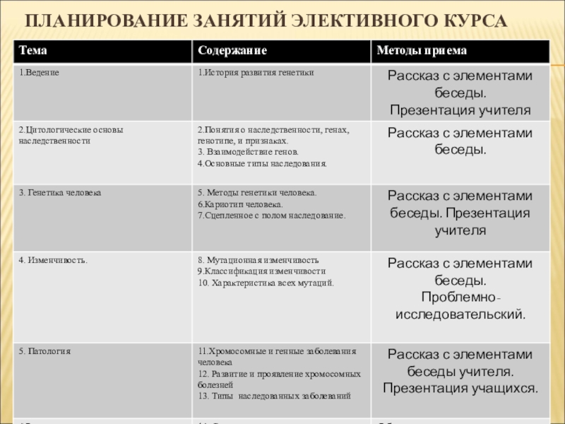 Слайд 8ПЛАНИРОВАНИЕ ЗАНЯТИЙ ЭЛЕКТИВНОГО КУРСА