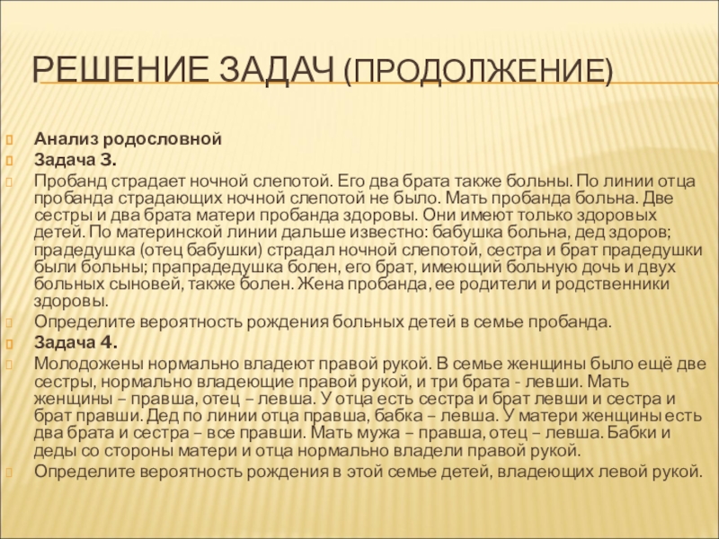 решения генетических задач- это помогает не только лучше понять главные законы наследственности, но и дать дополнительную возможность тренировки логического мышления, что является важным элементом любого обучения.