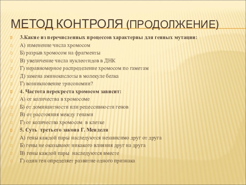 Слайд 23МЕТОД КОНТРОЛЯ (ПРОДОЛЖЕНИЕ)