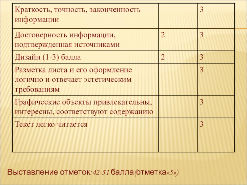 Слайд 16Выставление отметок:42-51 балла(отметка«5»)