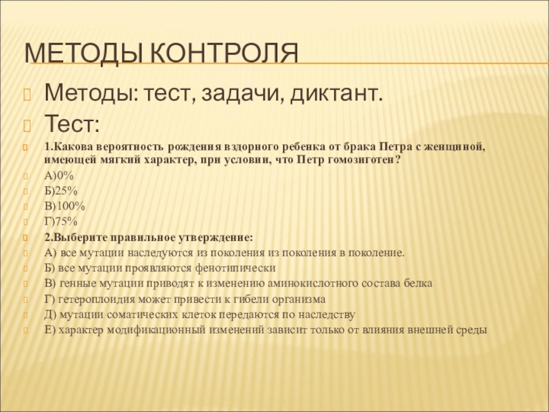 Слайд 22МЕТОДЫ КОНТРОЛЯ