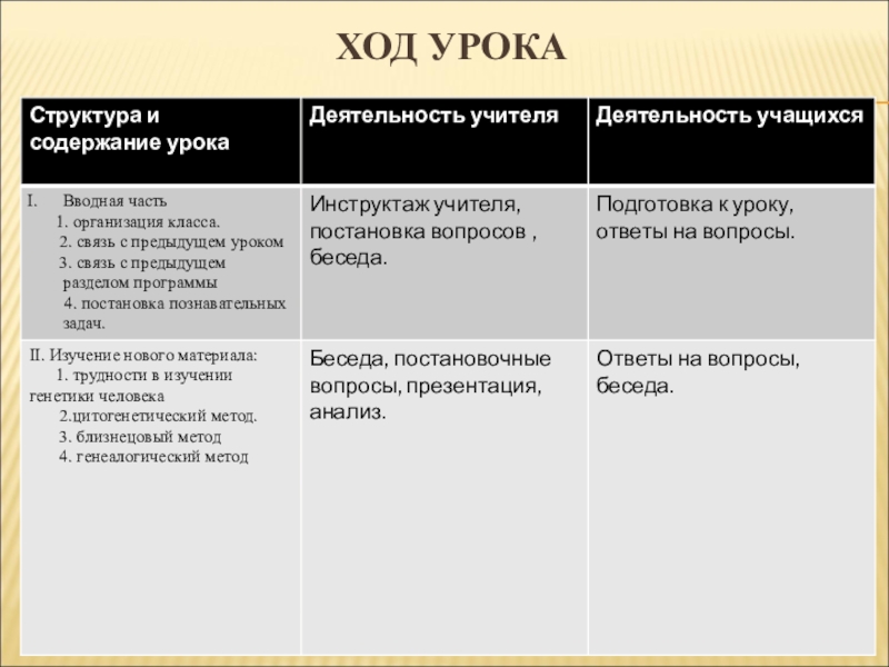 Оборудование: презентация PowerPoint «Методы изучения генетики человека»