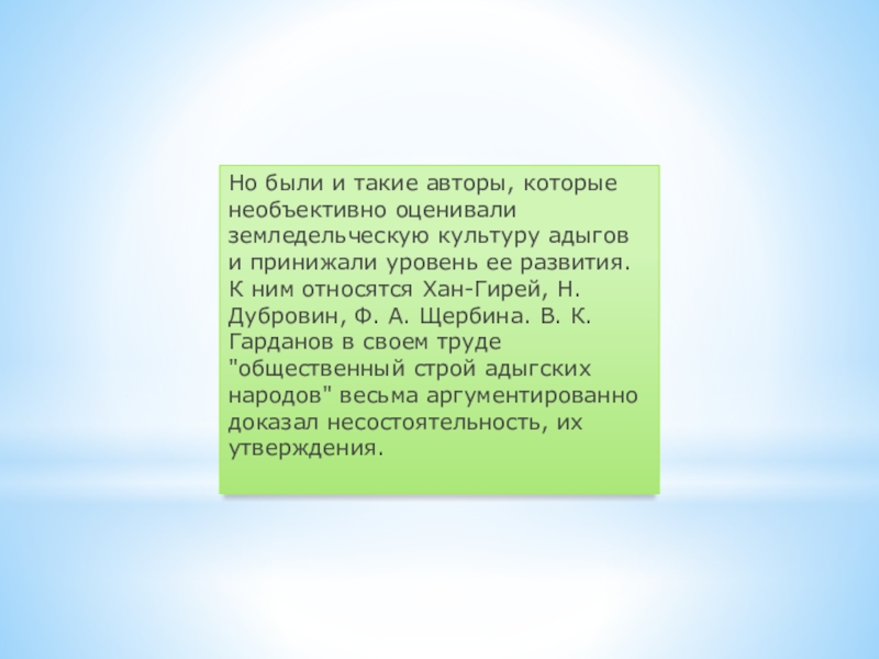 Слайд 30Но были и такие авторы, которые необъективно оценивали земледельческую культуру адыгов