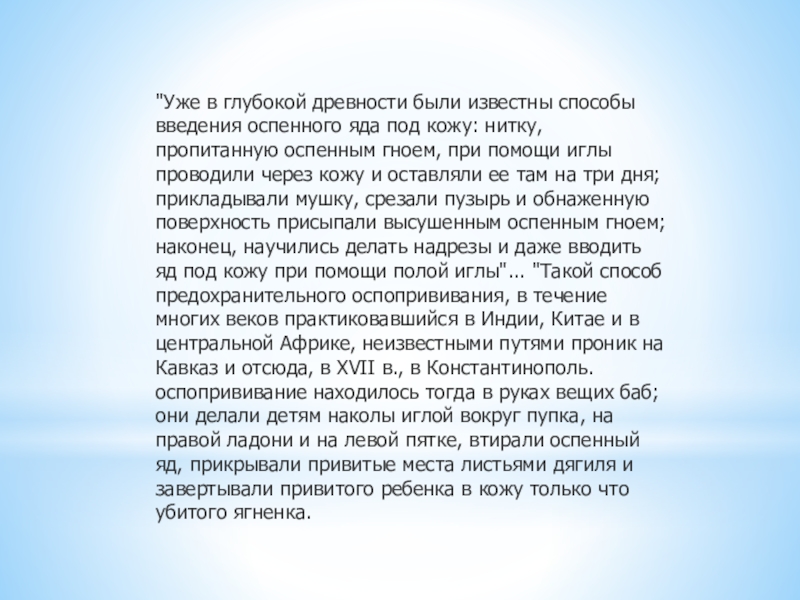 Слайд 47"Уже в глубокой древности были известны способы введения оспенного яда под